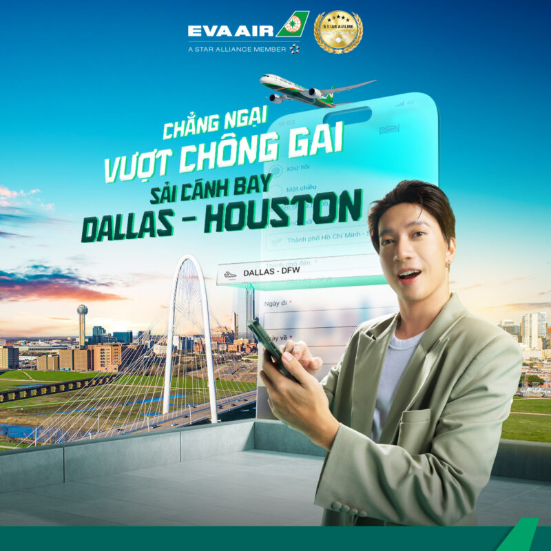 EVA Air tới giải cứu bạn đây! Vì đường bay Houston và đường bay Dallas Fort Worth mới giúp bạn vi vu vô lo vô nghĩ, chỉ xách balo lên và đi ngay!